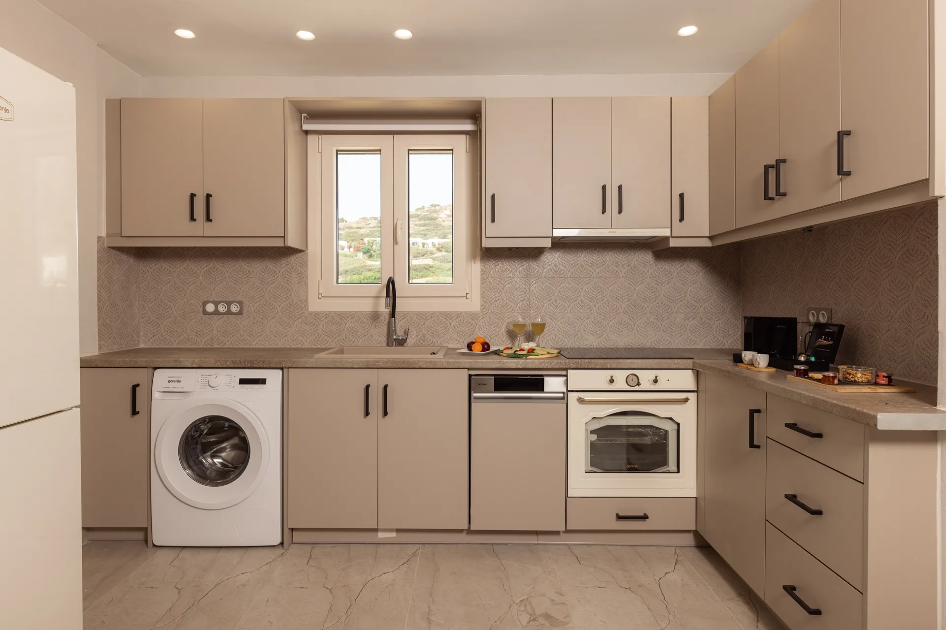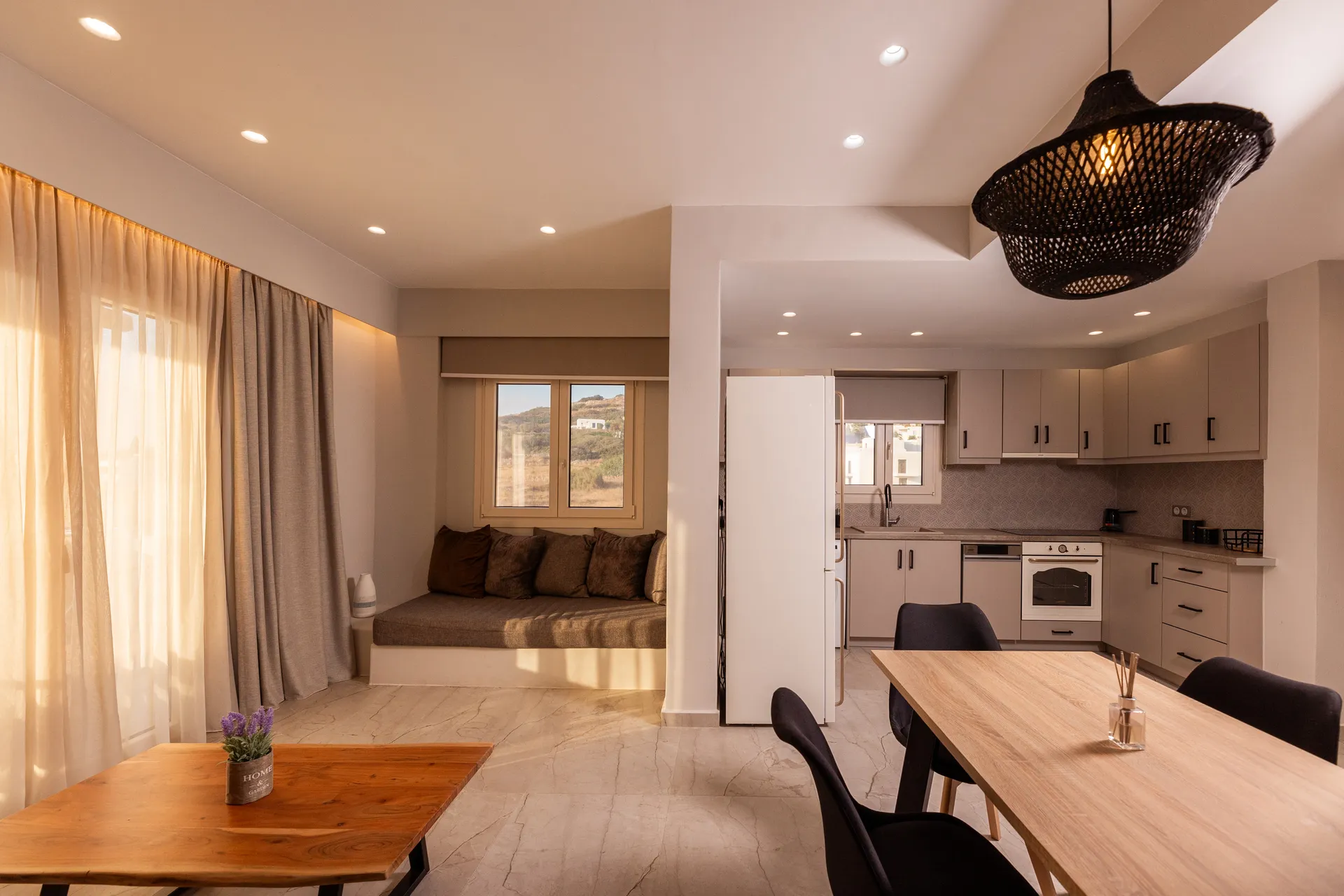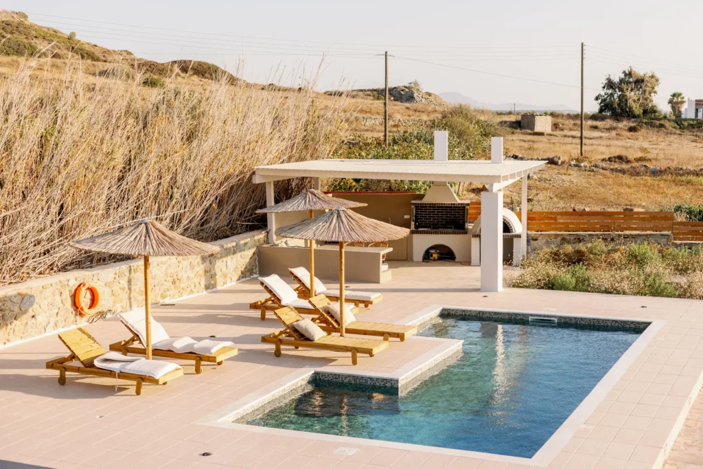 Experience the best of Naxos from Mikri Vigla, a stunning coastal area known for its golden sands, turquoise waters, and world-class kite surfing beach and school. Our villas combine modern comfort with relaxed island style, featuring private pools, spacious living areas, and direct beach access.
