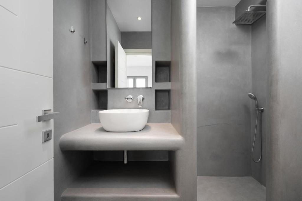 Outside, multi-level terraces offer shaded dining areas, sun loungers, and a private pool, perfect for taking in the serene surroundings and basking in the warm Aegean light.