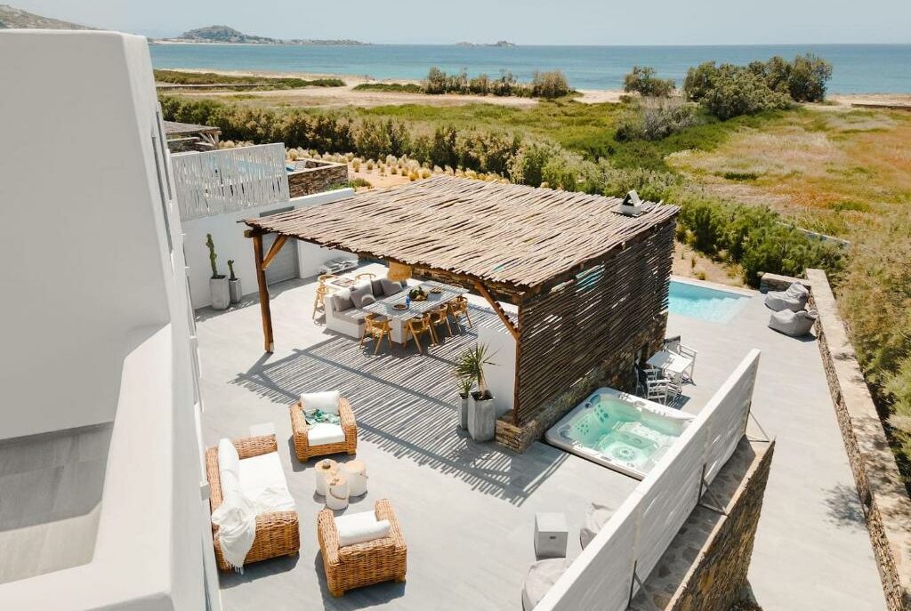 Experience the perfect beachfront escape at Naxos Beach House Plaka, a luxury villa with a private pool and Jacuzzi just a 2-minute walk from Plaka Beach. Enjoy morning swims, sea views, and unforgettable sunsets over the Aegean and Paros.