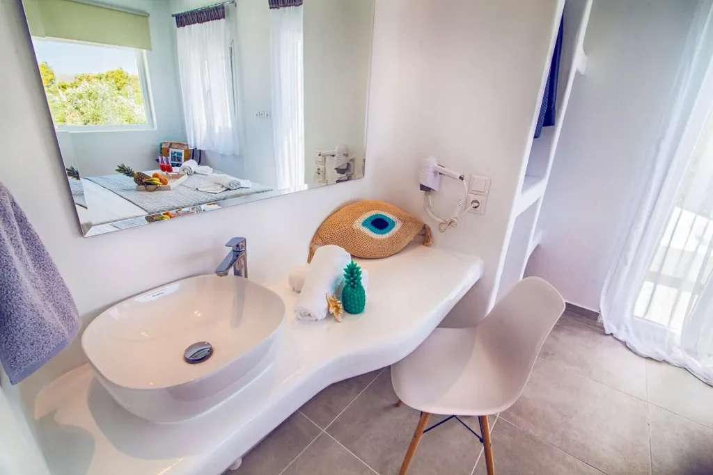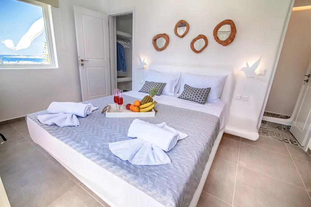 Brand new villa overlooking the beautiful bay of Kalafatis and offering excellent accommodation for couples or a family vacation.
