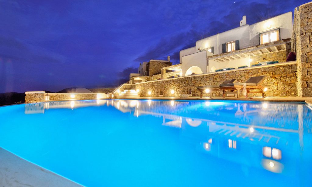 Villa Euclid is a stylish new villa close to Elia beach, great views and spacious 6 bedroomed accommodation.