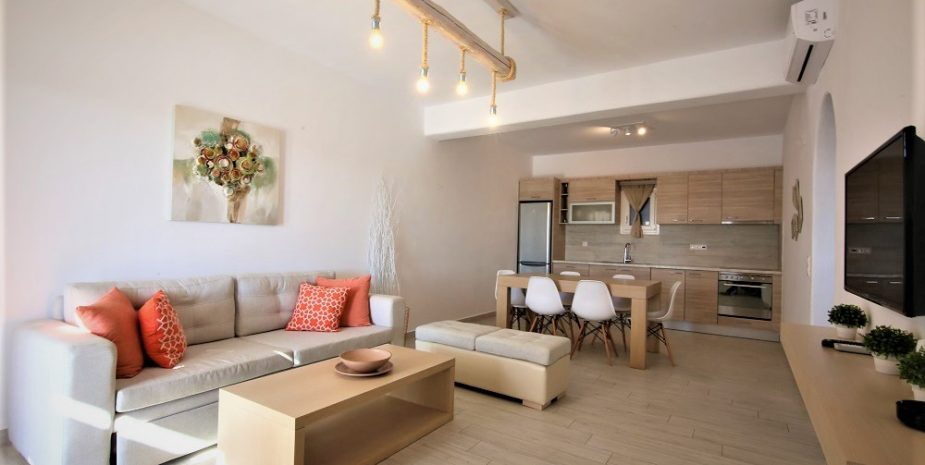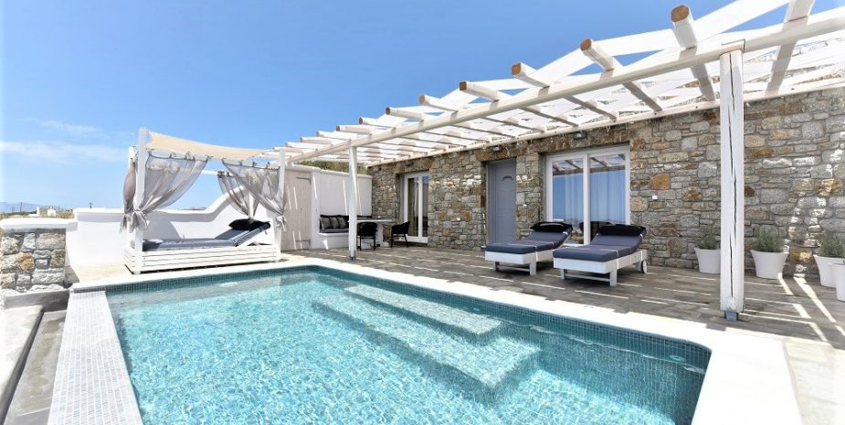 The Villas are newly built and furnished in Cycladic style, all offering very comfortable accommodation with living areas, well-fitted kitchens, and a private terrace with a swimming pool.
