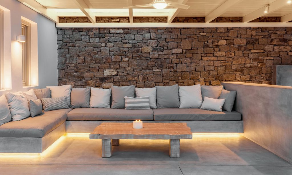 The beautiful infinity pools look over the sparkling Aegean and offer a selection of sun loungers, adjoining is a covered dining area and bar, plus BBQ.