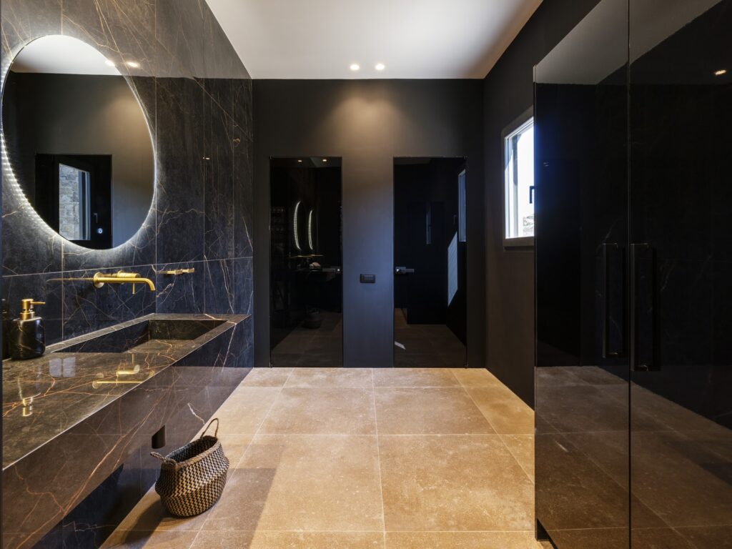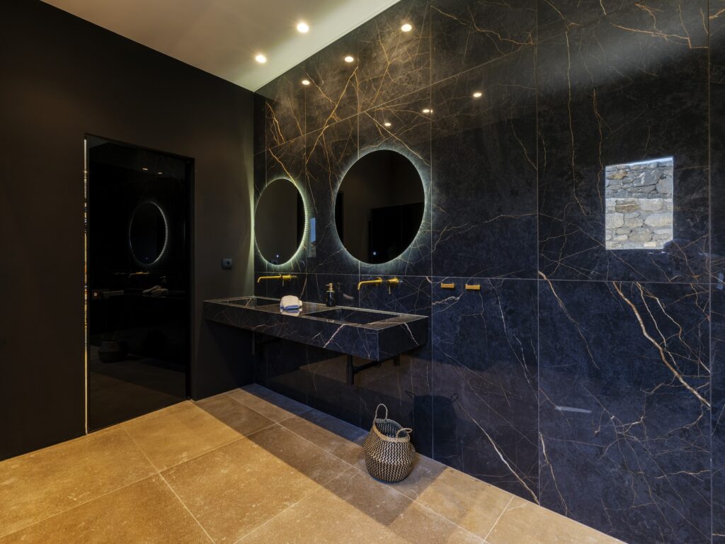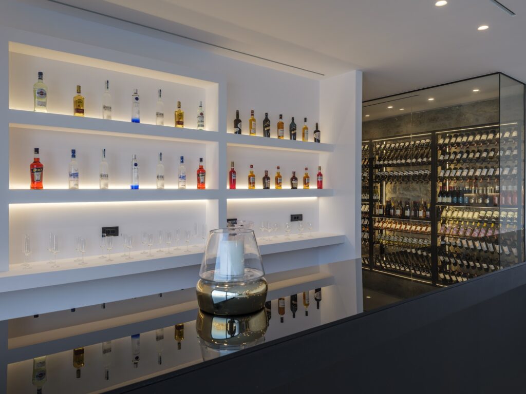Inside, there is a spacious and elegantly decorated living room, a professional kitchen, and a sophisticated bar and dining area. Spread over three levels, the ground floor features six bedrooms, each with an ensuite bathroom.