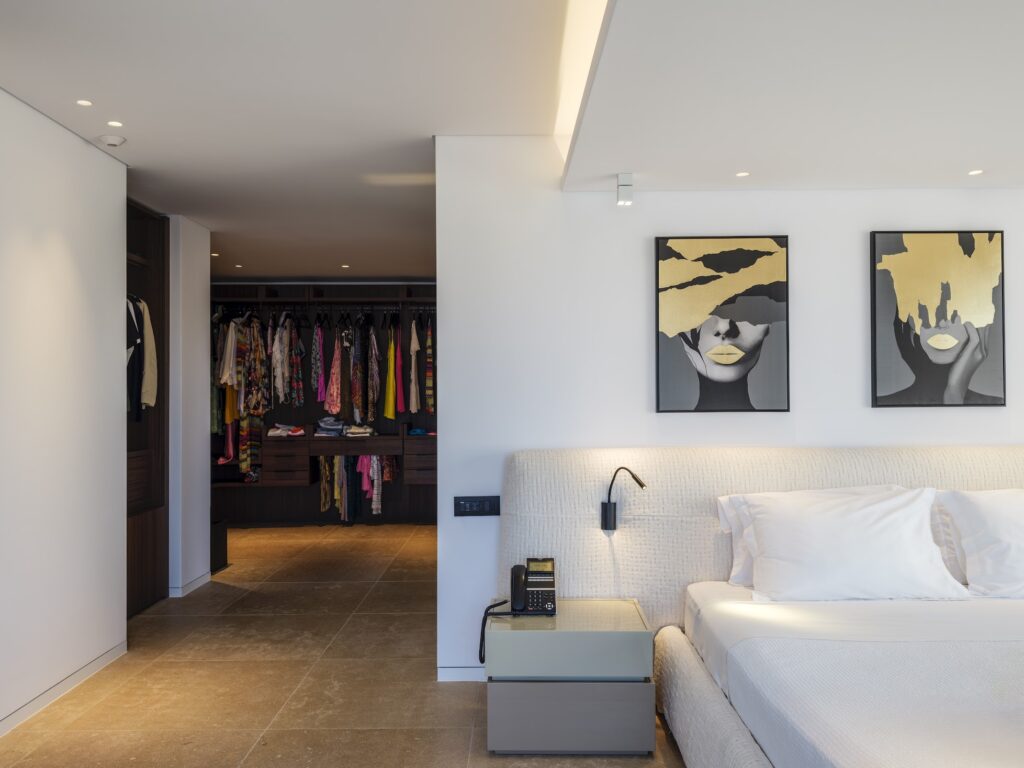 Master bedroom with ensuite bathroom, private balcony, and stunning sea views.
