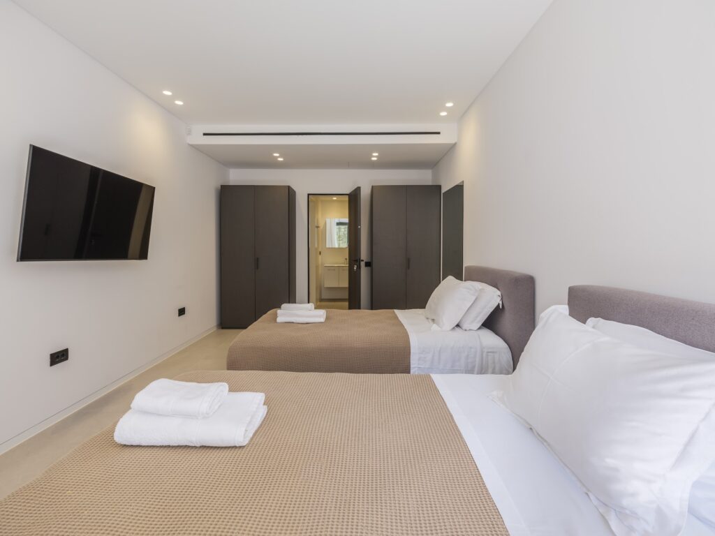 Three guest bedrooms, each with an ensuite bathroom and direct access to the outdoor area.