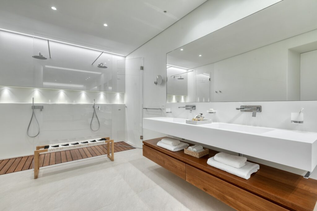 Master bedroom with king-size bed, en-suite bathroom with double showers and