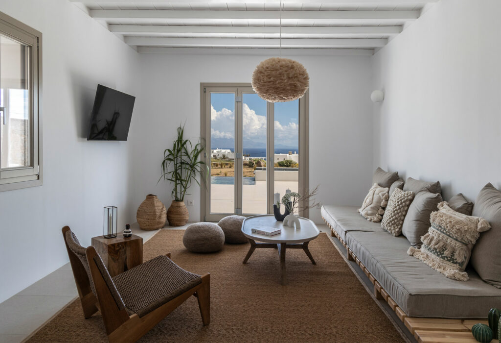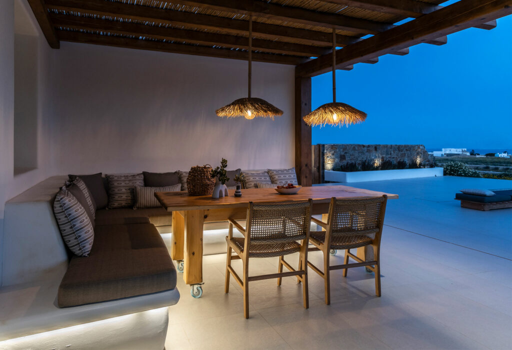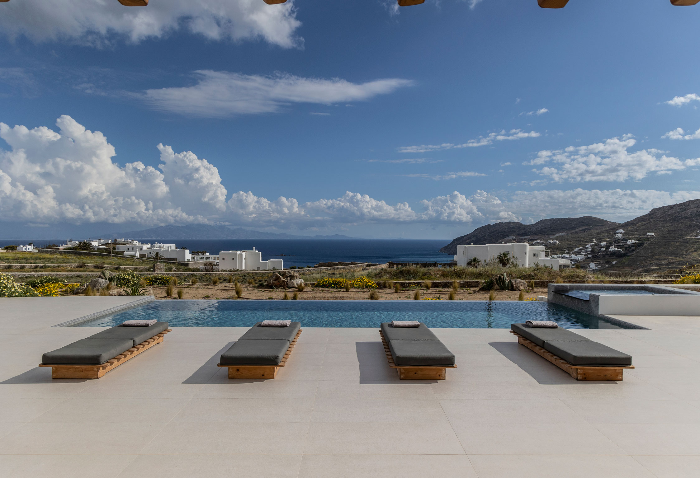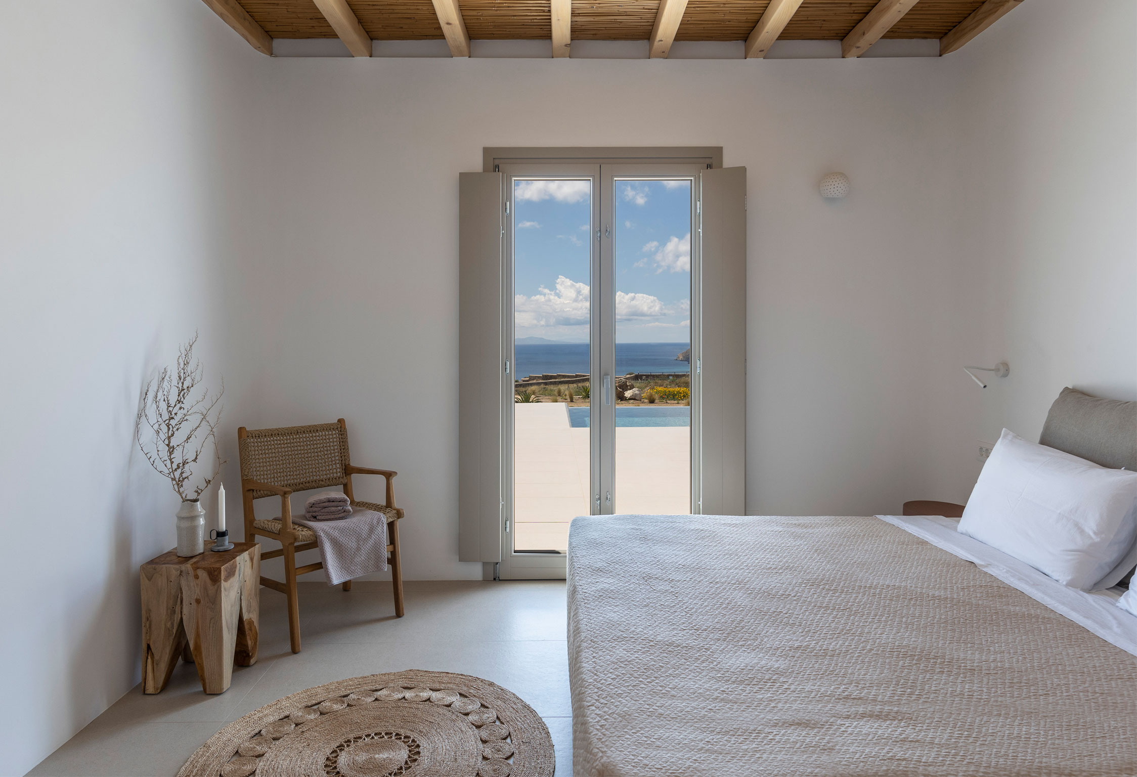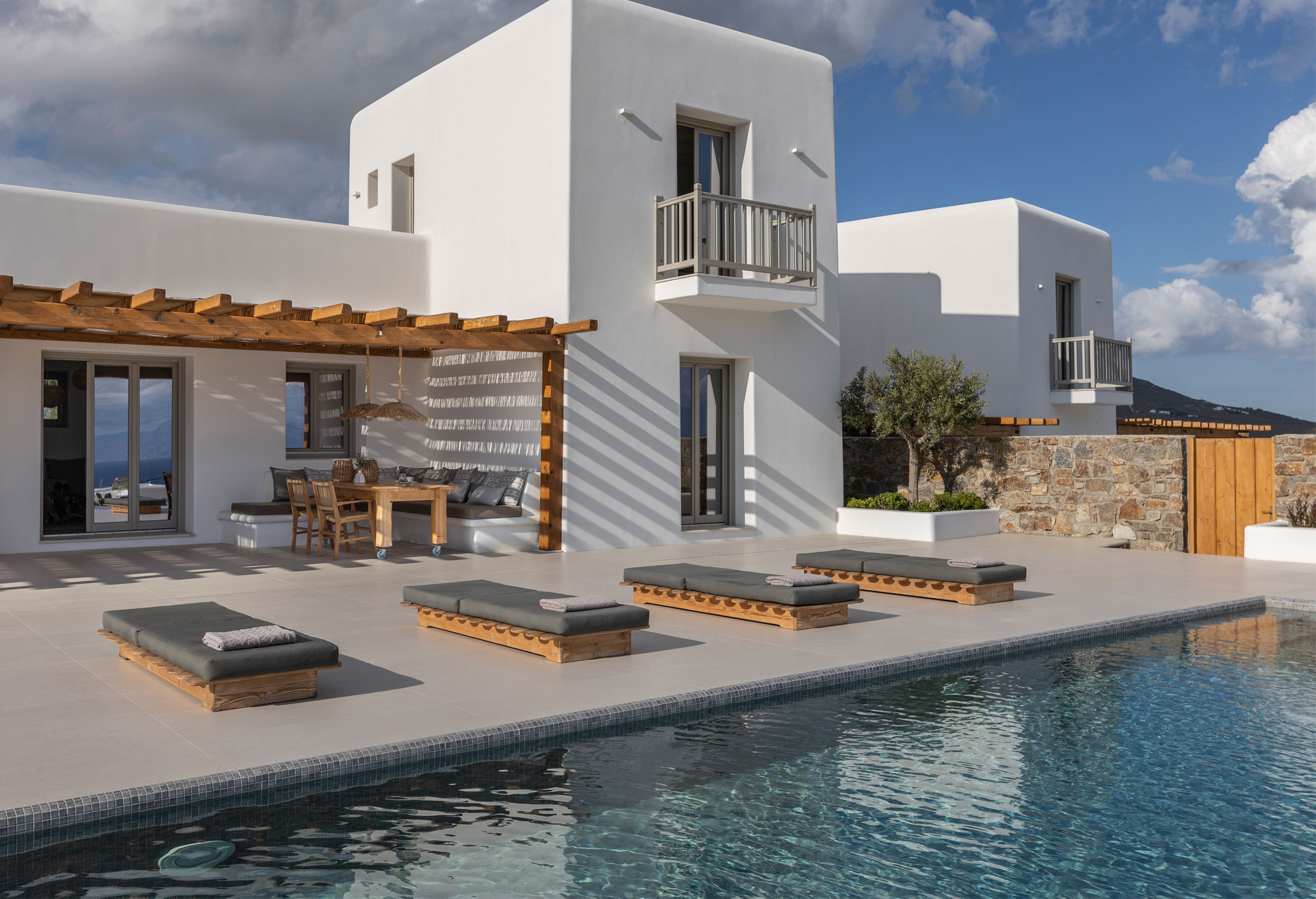 The villa’s large terrace has a panoramic view towards the sea and has a good-sized private pool, a covered dining area with a Gas BBQ, and sun loungers to enjoy the Aegean sun.