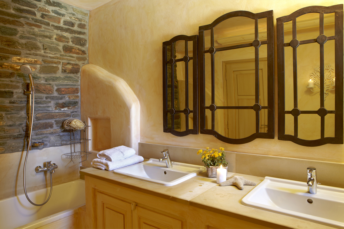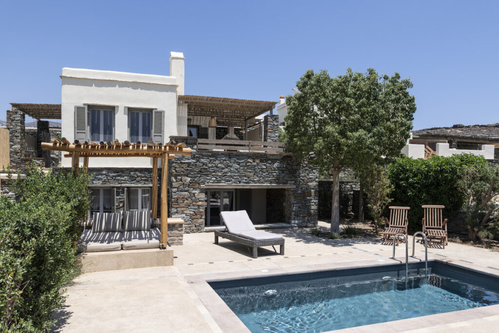 Traditional style Cycladic Villas offering comfortable accommodation with 3 bedrooms, 3 bathrooms, and a lounge/dining area with a well-equipped kitchen.