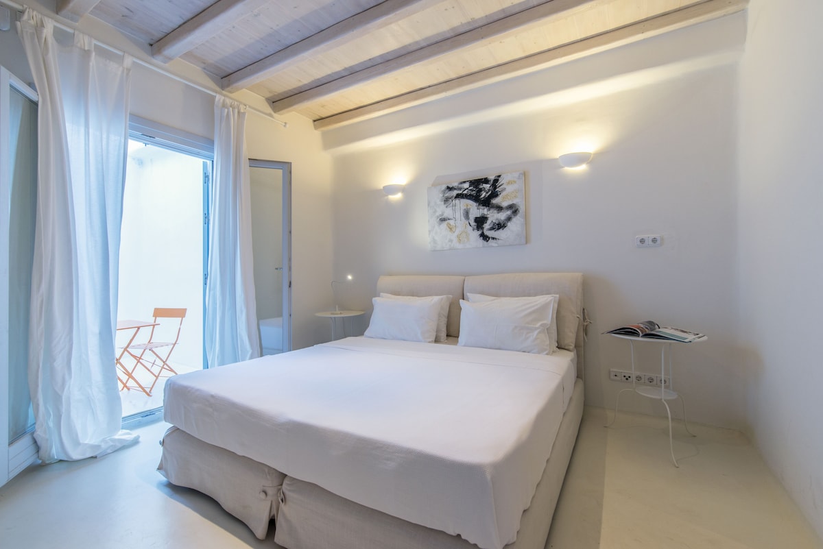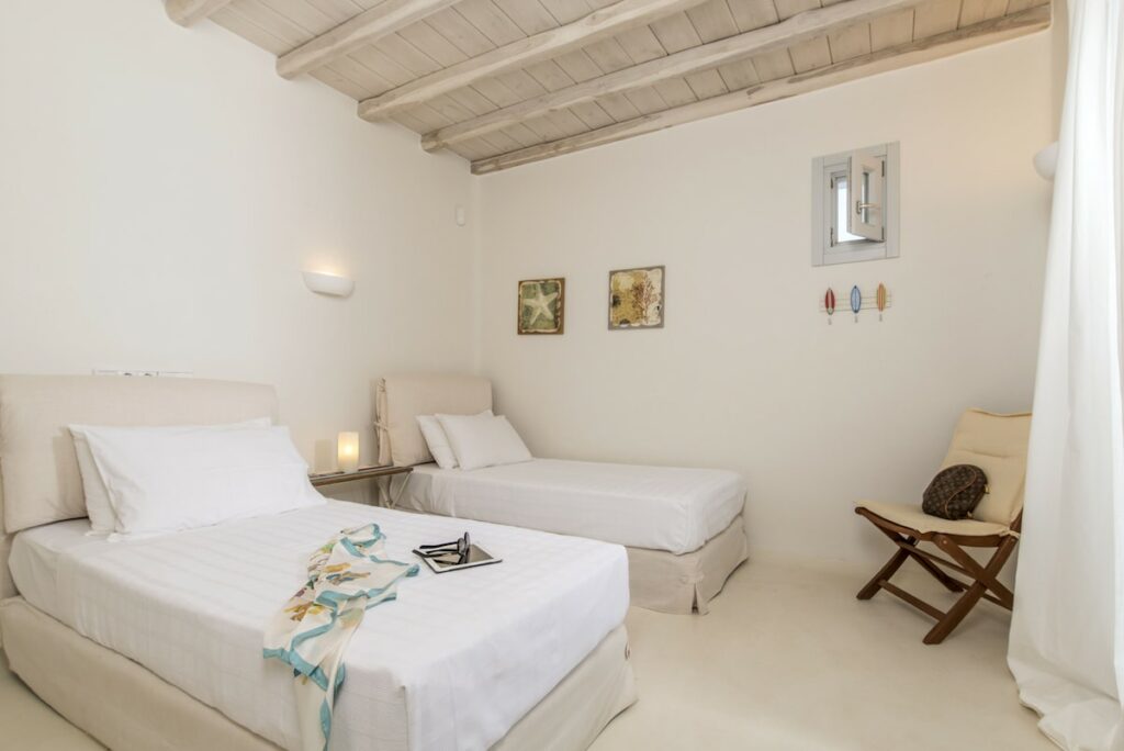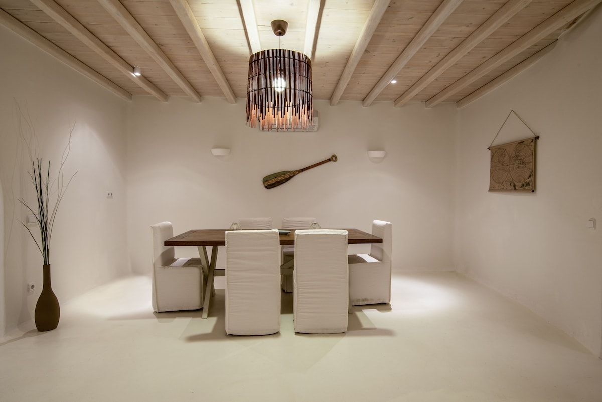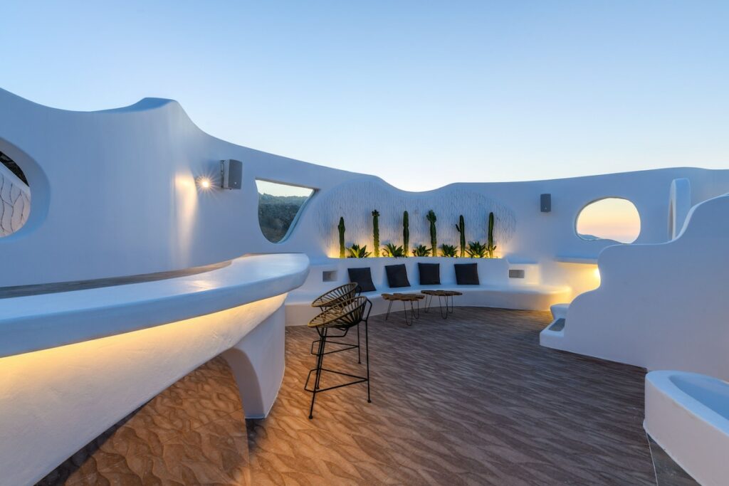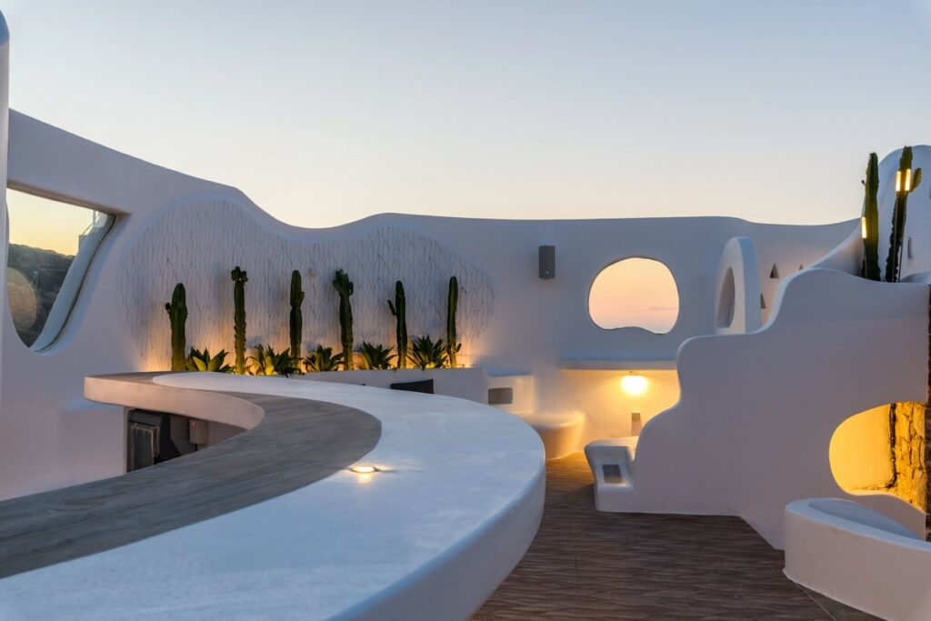 The architectural design, curated by Aktis Design and inspired by traditional Cycladic handcrafted architecture, blends timeless aesthetics with modern comfort across both indoor and outdoor living spaces.