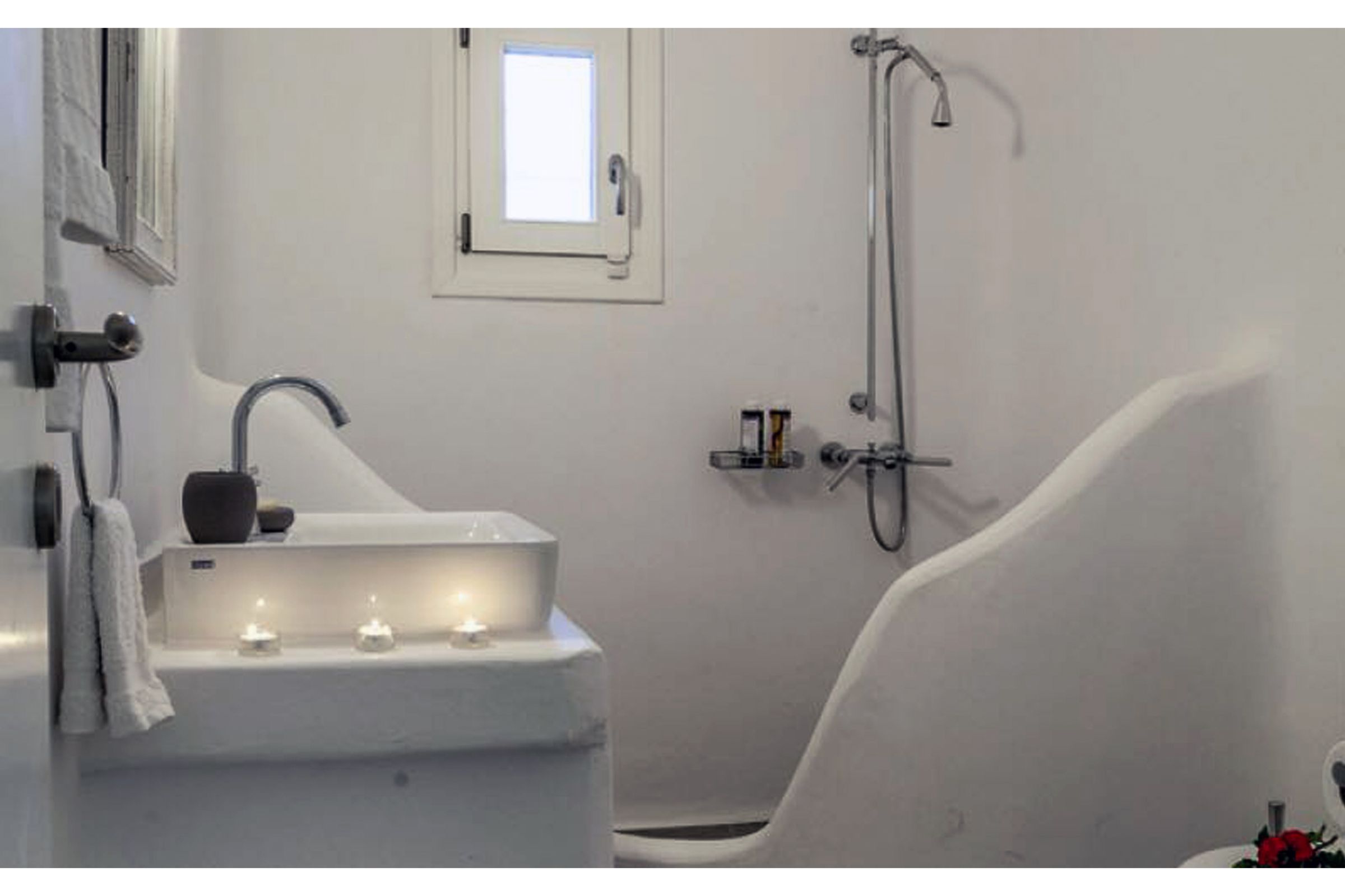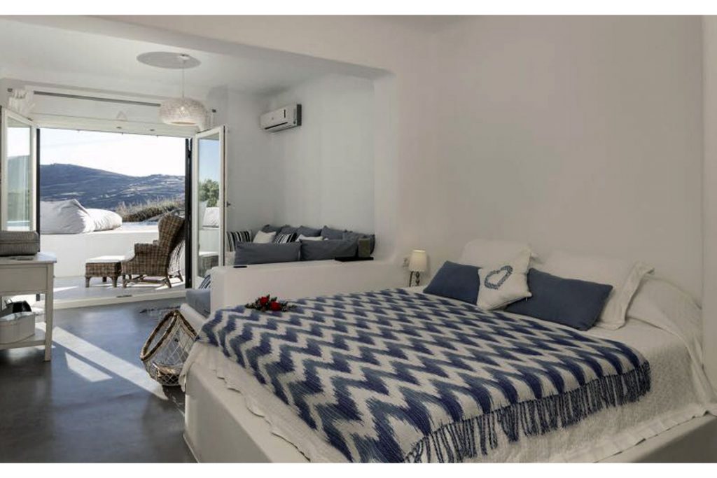 Villa Summer Blue Mykonos offers 4 bedrooms, 4 bathrooms, a living/dining area, and a fully equipped kitchen.