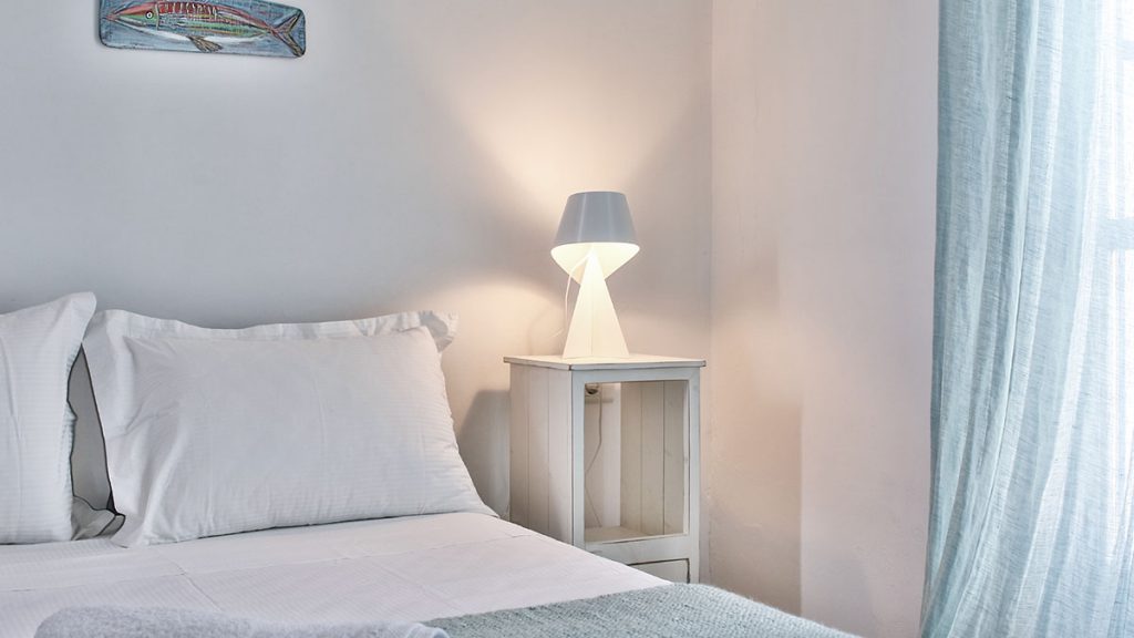 A spacious master bedroom with a large comfortable double bed plus a sitting area and a balcony that overlooks the sea.