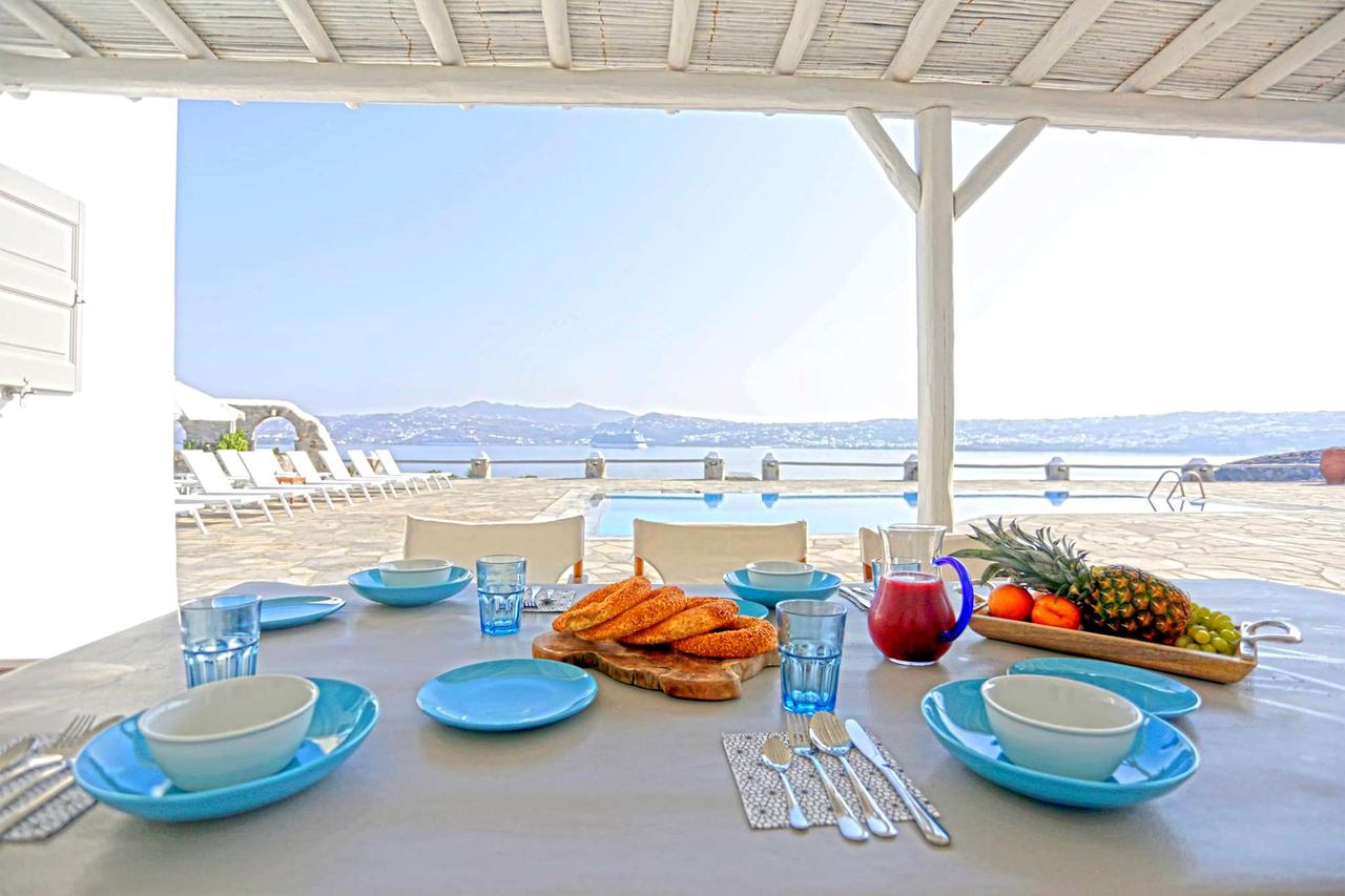 Large modern luxury villa located in the popular area of Kanalia and offering lovely views across to Mykonos town and the shimmering Aegean sea.