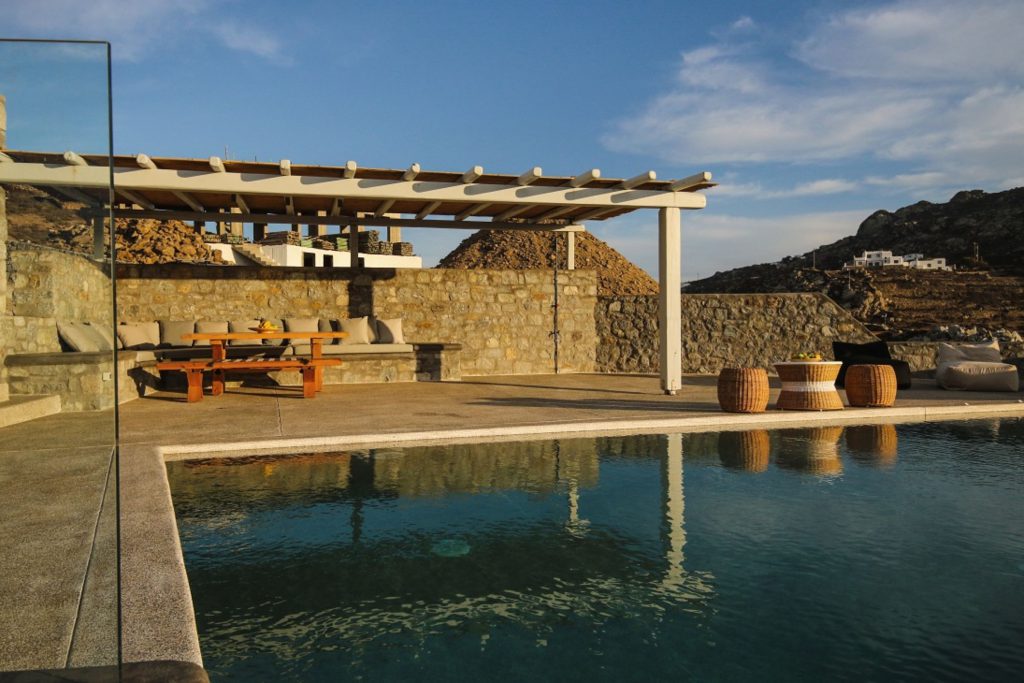 Situated just 10 to 15-minute walking distance to the famous beach bars Alemagou & Ftelia Beach Club.